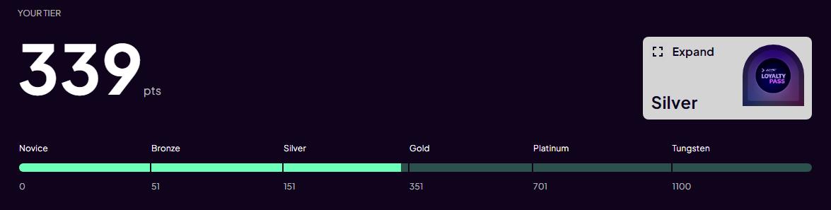 O Loyalty Pass tem 6 níveis de classificação e depende do número de pontos que você acumula a cada mês desde o início de 2023.