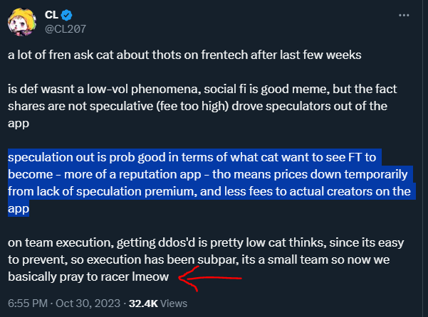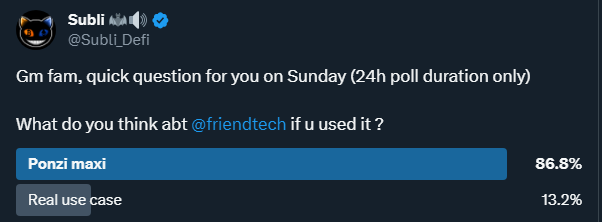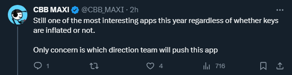 Além disso, algumas das minhas amizades recentemente entraram em total defeito, o que significa que elas venderam toda a sua carteira. Quando isso acontece, espere que o valor da chave deles despenque. Assim, uma chave que você comprou por 0.15 ETH pode rapidamente valer apenas 0.02 ETH... Essa narrativa de farming de airdrop atraiu muitas contas novas no Twitter, então estou cada vez mais desconfiado da maioria das contas. Mesmo pessoas com muitos seguidores recentemente venderam toda a sua carteira, e isso realmente prejudica os (3,3)ers.